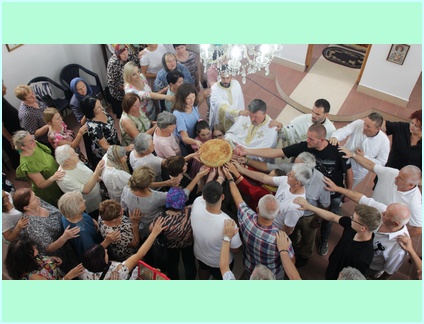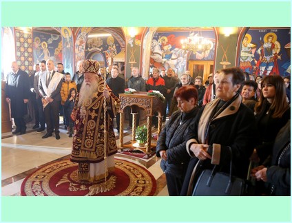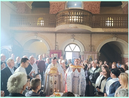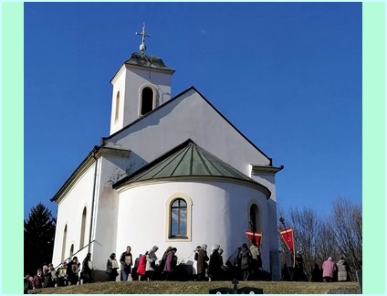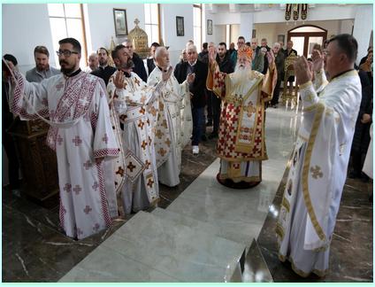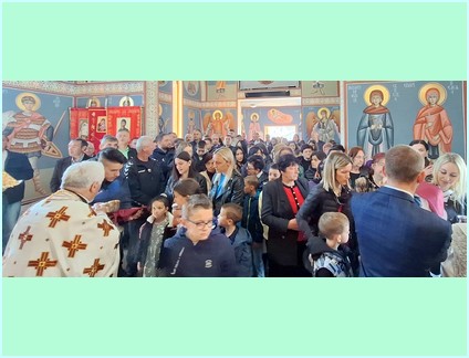 У храму светих апостола Петра и Павла надлежни парох јереј Драгиша Цвјетковић служена је свету литургију. Мало стадо Христово окупљено се у име Божије и име Светог Саве. Након Свете Евхаристије јереј Драгиша је преломило славски колач.
