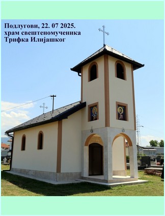 Данас у суботу, 04. октобра 2025. године, на дан успомене светог апостола Кодрата и на Оданије празника воздвижења часног крста, по лијепом и угодном времену, освештана је чином троносања црква светог свештеномученика Трифуна Илијашког. Од данас је ово филијални храм у парохији Илијашкој у Илијашу.