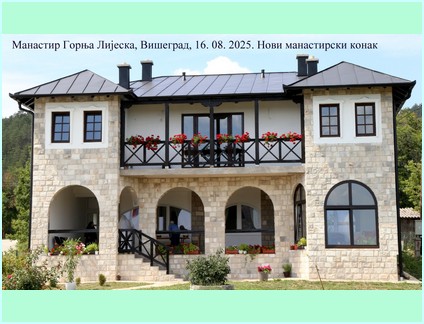 Данас у четвртак, 16. октобра 2025. године са почетком у 15:00 часова Његово Високопреосвештенство Господин Хризостом, архиепископ сарајевско-сребренички и митрополит дабробосански уз саслужење Високопреподобних архимандрита Кипријана Топаловића, настојатеља манастира Грађеника и архимандрита Калистрата Бобушића, настојатеља манастира Добруна те јерођакона Тихона  Дувњака, сабрата манастира Добрунска Ријека, освештао је новоподигнути конак манастира Горња Лијеска у селу Горња Лијеска у општини Вишеград.