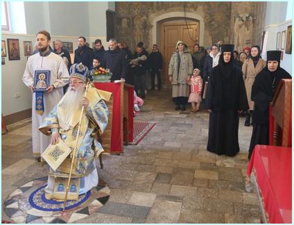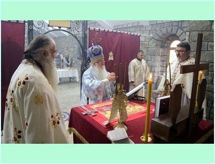 Свету архијерејску литургију служио је Високопреосвећени митрополит црногорско-приморски Господин Јоаникије уз саслужење: домаћина  митрополита Господина Хризостома те високопреподобних архимандрита: Кипријана Топаловића, настојатеља манастира Грађеника; Калистрата Бобушића, настојатеља манастира Добруна; Луке Бабића, настојатеља манастира Карно и игумана Георгија Станковића, настојатеља манастира Озерковићи те ђакона Будимира Гардовића.