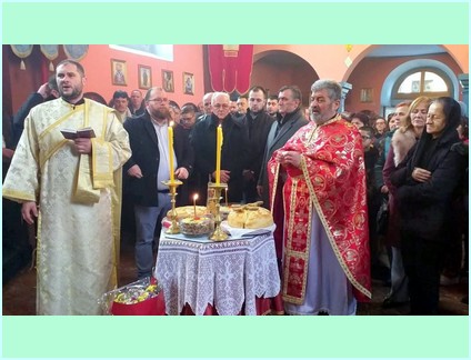 У храму светих апостола Петра и Павла надлежни парох јереј Драгиша Цвјетковић служена је свету литургију. Мало стадо Христово окупљено се у име Божије и име Светог Саве. Након Свете Евхаристије јереј Драгиша је преломило славски колач.