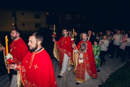 Уз појање васкршње стихире: „Воскресеније Твоје Христе Спасе“... брујање звона Саборног Светосавског храма, уз упаљене свијеће, тачно у поноћ отпочело је свечано и торжествено прослављање празника над празницима, Васкрсења Животодавца Господа Исуса Христа. У радости, љубави и заједништву вјерни народ Божији Васкршњом литијом формирао је литијски круг око своје вијековне жеље који је управо праобразно подсјетио на Васкршње јаје - симбол побједе Живота над смрћу.