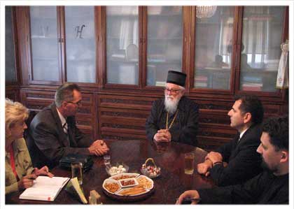 Његово високопреосвештенство митрополит дабробосански господин Николај примио је у петак, 20. јуна, у просторијама Митрополије Њену екселенцију амбасадора Републике Грчке у БиХ госпођу Константину Мавроскелиду. Госпођа Мавроскелиду уручила је митрополиту Николају донацију Републике Грчке у износу од 30.000 евра за потребе инсталације система гријања у Сабројној цркви Рођења Пресвете Богородице у Сарајеву. Ова донација дио је средстава за БиХ из Грчког националног плана за економску реконструкцију Балкана. Господин Николај захвалио је госпођи Мавроскелиду на донацији, истакавши да је то још једна у низу помоћи Грчке и грчког народа БиХ. Госпођа Мавроскелиду је митрополиту Николају честитала потписивање Основног уговора између БиХ и Српске православне цркве. У пратњи госпође Мавроскелиду био је и економски савјетник у Амбасади Републике Грчке у БиХ господин Георгиос Мермигис. 15.06.2008