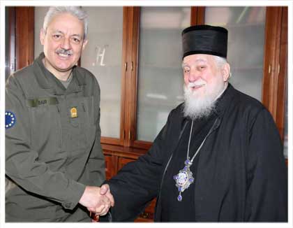 Владика Николај упознао је госте са историјатом Митрополије дабробосанске и њеним најзначајнијим вјерским, културним и образовним споменицима и институцијама, посебно указавши на значај Старе православне цркве на Башчаршији и музеја који се налази уз њу, те Саборног храма Рођења Пресвете Богородице на образовање, културу и духовност православних Срба у Сарајеву. Високопреосвећени је говорио о добрим односима цркава и вјерских заједница у Сарајеву, истакавши да међу њима постоје многи заједнички ставови и ствари. Господин Николај посебно је навео рад Међурелигијског вијећа и његов значај за све народе у БиХ и сматра да је неопходно да држава пружи помоћ, посебно финансијску, овом удржењу. Владика Николај рекао је да Српска православна црква /СПЦ/ има у Министарству одбране и Оружаним снагама БиХ 12 свештеника, те да један њен свештеник долази и у ЕУФОР-ову базу „Бутмир“ гдје обавља вјерске обреде за православне вјернике у међународним снагама у БиХ. Захваливши на пријему, Баир је рекао да му је велика част што је имао прилику да се упозна са „личном картом“ Митрополије дабробосанске и разговара са првим представником СПЦ у БиХ. Он је позитивном оцијенио добру сарадњу између цркава и вјерских заједница, јер је то важан дио културног живота у сваком друштву.