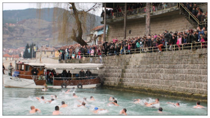 Издавачка кућа Митрополије дабробосанске „Дабар“ организује у суботу, 25. јануара, са почетком у 19 часова, у Народном дому манастира Успења Пресвете Богородице у Дубруну, промоцију фототипског издања сарајевског преписа Законоправила Светог Саве. 22. 01. 2014. На велики хришћански празник Богојављење, у Вишеграду је, код ћуприје на Дрини, четврти пут заредом одржано пливање за Часни крст. 22. 01. 2014. Велики хришћански празник Богојављење прослављен је у храму Успења Пресвете Богородице у Чајничу. 13. 01. 2014. У сусрет радосним празницима Рођења по плоти Господа и Спаса нашега Исуса Христа и просветитеља и учитеља српског Светога Саве, са благословом Митрополита дабробосанског г. Николаја у издању Издавачке кућа Митрополије дабробосанске „ДАБАР“, свјетлост дана угледала је предивна књига попадије Оријане Ливопољац, подједнако намијењена нашим најмлађим читаоцима, а такође и нама одраслима који се, са срцем испуњеним радошћу, присјећају предивних дана детињства... 13. 01. 2014. Велики празник Рођења Господа Исуса Христа – Божић, у уторак 7. јануара, свечано је прослављен у храмовима на подручју Сокоца. 08. 01. 2014. У храмовима Митрополије дабробосанске, у уторак 7. јануара, служењем Светих литургија свечано је прослављен најрадоснији хришћански празник, Рођење Господа Исуса Христа – Божић. 05. 01. 2014. Чланови православне омладине при Саборном храму Рођења Пресвете Богородице у Сарајеву организовали су данас у Источном Сарајеву дружење и подјелу 20 божићних пакетића за лица са потешкоћама у развоју при Удружењу омладине са инвалидитетом и родитеља дјеце са потешкоћама у развоју „Вратите нам осмијех“. 05. 01. 2014. У Саборном храму Рођења Пресвете Богородице у Сарајеву данас је подијељено 50 хуманитарних пакета са основним намирницама за социјално угрожена лица у Сарајеву. Старије вијести Новије вијести