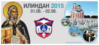 Више од педесеторо дјеце учествовало је у активностима које је организовало свештенство храма Светог Василија Острошког у Добрињи, Источна Илиџа, поводом прославе Светог Сисоја Чудотворца, заштитика дјеце. 22. 07. 2015. Обавјештавамо благочестиви народ да ће се у суботу и недјељу, 1. и 2. августа 2015, прославити храмовна слава храма Светог пророка Илије у Сокоцу, те крсна слава и дан Општине Соколац. 22. 07. 2015. Начелник општине Соколац и Црквена општина у Сокоцу позивају благочестиви народ да сви заједно узмемо молитвеног учешћа у освећењу Спомен храма Преподобне мати Параскеве - Свете Петке у војничком Спомен гробљу „Мали Зејтинлик“ у Сокоцу. 22. 07. 2015. Храм Светих Апостола Петра и Павла на Нишићкој висоравни и ове године је свечано прославио своје Свете заштитнике. 10. 07. 2015. 09. 07. 2015.