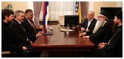 Данас је у сриједу, 3. јануара 2018. године, Његово Високопреосвештенство г.г. Хризостом, митрополит дабро-босански имао сусрет и разговор са Министром у Вијећу министара БиХ-не Господином Мирком Шаровићем. У врло пријатном и срдачном сусрету Господин Шаровић је извјестио Високопреосвећеног митрополита г. Хризостома о резултатима вођених активности око пројекта санације и реконструкције зграде Митрополије у Сарајеву.