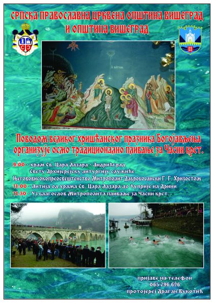Светом архијерејском литургијом коју ће на Богојављење, 19. јануара, служити Његово високопреосвештенство митрополит дабробосански Хризостом у Храму Светог цара Лазара у Андрићграду и пливањем у Дрини за Часни крст код вишеградске ћуприје биће прослављен овај велики празник.