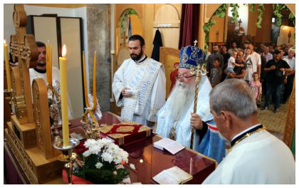 У Евхаристијском сабрању одслужисмо службу Божију у храму Успења Пресвете Богородице, а потом у присуству великог броја наших вјерника, извршисмо велико освећење воде.
