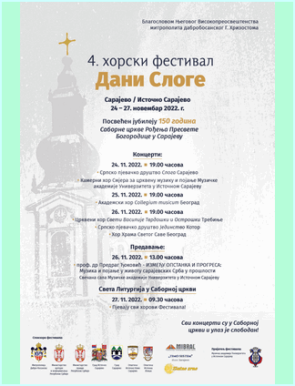 У саборном храму Рођења Пресвете Богородице у Сарајеву, у четвртак 24. новембра 2022. године, отворен је фестивал хорске музике „Дани Слоге“, на којем су учествовали хорови из Србије, Црне Горе и Босне и Херцеговине, а под организацијом СПД „Слога“ из Сарајева.