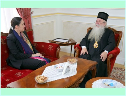 Високопреосвећени митрополит Господин Хризостом пожелио је добродошлицу госпођи Карић, те ју је упознао са историјским развојем митрополије Дабро-босанске и тренутним стањем у митрополији.