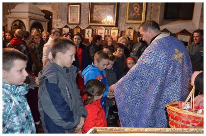 11.01.2018. БАДЊЕ ВЕЧЕ И БОЖИЋ У ТРАВНИКУ Прослављајући Дјетињце,Материце и Оце који претходе празнику Божића,један од најрадоснијих празника везаних за Божић јесте свакако и Бадњи дан .Већ 17.година се овај празник са великом радошћу дочекује у Травнику уз ,,мало стадо“ наших вјерника. Велики број парохијана ове парохије је избјегао за вријеме рата тако да је веома мали број наших вјерника остао да живи у овом крају. То су веома честити парохијани који држе како до своје вјере тако и до својих обичаја којих нису изгубили ни у избјеглиштву. Бадње вече је посебан догађај у нашем граду јер тога дана ујутро рано стиже Бадњак у порту храма који се навече налаже на ватру.Како претходних година, Бадњак припреми и донесе своме храму наш вјерник Јордан Јаковљевић, тако је и ове године. На Бадњи дан навече у 16.часова одслужено је вечерње богослужење уз освећење и подјелу Бадњака којег су вјерници однијели својим кућама да их сачува и угреје топлотом Христовом.Вечерњем богослужењу ове вечери присуствовао је жупник жупе Долац фра Зоран Ливанчић који је на крају вечерњег богослужења честитао свим присутним Бадње вече и наступајући Божић,те том приликом уручио надлежном свештенику протонамјеснику Горану Живковићу умјетничку слику витраја са долачке цркве.Уз до сада невиђен број, како наших вјерника тако и наших суграђана муслимана и римокатолика који су дошли да са нама заједно прославе овај велики хришћански празник,у порти храма је наложен Бадњак на ватру уз музику,игру,пјесму и кухано вино .