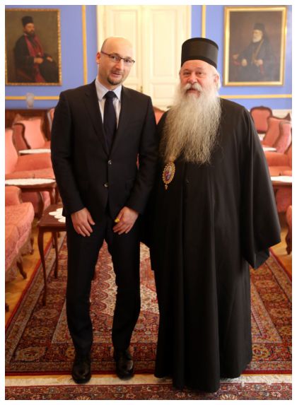 02.03.2018. МИТРОПОЛИТ ХРИЗОСТОМ ПРИМИО АМБАСАДОРА СЛОВАЧКЕ Његова Екселенција Господин Мартин Качо, опуномоћени амбасадор Републике Словачке у Босни и Херцеговини, данас је 2. марта 2018. године у 11:00 часова, примљен у аудијенцију код Његовог Високопреосвештенства Господина Хризостома, митрополита Дабро-босанског. У врло отвореном и пријатељском разговору Високопреосвећени је упознао Његову Екселенцију о историјату митрополије Дабро-босанске, и о њеном тренутном стању и односима који јесу и владају у БиХ. Саговорници су се потсјетили и на оне трагичне периоде кроз које су прошла два народа - Српски и Словачки кроз историју, а посебно у 20. вијеку.