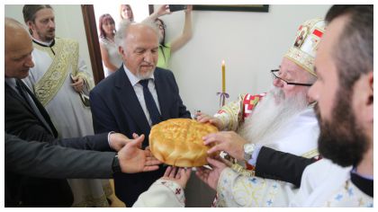 У наставку процесије Високопреосвећени је уз пратњу домаћина начелника Општине Фоча Господина Радислава Машића и свештенства прешао у зграду Општине Фоча гдје је такође преломио славски колач и благословио славско кољиво за општину Фоча.
