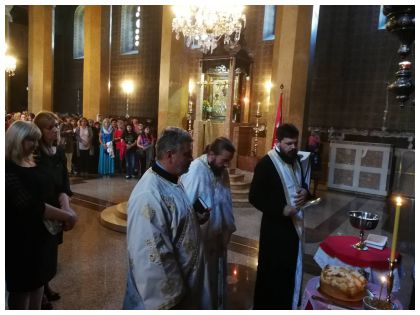 Након Свете литургије, којом је началствовао о. Дамјан Радовић,  преломљен је славски колач и освештано славско жито. Кумови славе ове године су били начелник општине Горан Караџић и Зорица Марић са породицом. За трпезом љубави, коју су припремили кумови славе и чланице Кола, послужени су вјерници и поклоници из Зајечара.  За трпезом су славу чланицама Кола честитали о. Драгиша Симић, начелник општине Горан Караџић и предсједница Кола српских сестара Слава Живковић.