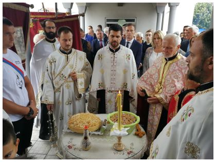 Послије Литије преломљен је славски колач испред храма, а затим је уприличена Трпеза Љубави на коју су сви добродошли.