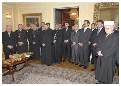 Другог дана Божића, Високопреосвећени Митрополит Г. Николај служио је Свету Литургију у храму св. пророка Илије у Сокоцу, а у вечерњим часовима је поздравио званице на традиционалном божићном пријему, приређеном у митрополијском двору у Сарајеву. Митрополитов говор на пријему овдје доносимо у цијелости: „Ваше еминенције, ваше екселенције, даме и господо, Сви ми у себи откривамо дарове Божије, благодат Божију. Дарови су многи, па је међу њима као дар Божији и власт. Власт је потенцијално моћно средство ако се врши правилно. То је молитвена атмосфера властодршца у којој његова душа живи љубављу према Богу и ближњем коме служи. Правилном употребом власти, тим даром Божијим, властодржац све доводи у ред, спречава сваку невољу, отклања препреке, прекршаје, све управља на добро; штавише, може да постигне велике и чудесне ствари. Док говорим о власти као Божијем дару, говорим о теми која је за нас овде од пресудног значаја. Постављам питање, да ли знамо шта је власт, како да је употребљавамо, а да се о дар власти не огрешимо? Када смо били дјеца старији су нас учили да поштујемо и уважавамо властодршце и покоравамо се власти, али и да се учимо како ћемо власт правилно користити, јер је власт божански дар! Али ако пут властодршца није исправан он никада неће стићи ни до Бога ни до људи. Власт која почива на моралним начелима јесте власт од Бога, Божија врлина и благодат. Таква власт има подршку Богомладенца Христа. Насупрот овоме стоји власт која се прије може оцијенити као безвлашће. Безвлашће је оно што је учинио злогласни цар Ирод убивши 14.000 невиних витлејемских младенаца да би Христа убио. На власт каква је била Иродова, самовољна и злочиначка, треба реаговати на трезвен начин, јер јеванђелист Лука биљежи ријечи светога апостола Петра и осталих апостола: „Богу се треба покоравати више него људима“ (Дап 5,29). Свака власт је од Бога и она означава морални поредак међу браћом. Господ Христос је увео у овај свијет своје законе не ради рушења општег грађанског поретка, него ради исправљања и побољшања истог. Свети Апостол Павле, као проповједник Јеванђеља међу многобошцима, говори о овоме у најзгоднијем тренутку. Када је изложио слушаоцима разне поставке хришћанске философије охрабрио их је да живе у миру са пријатељима и непријатељима, научио их је да буду корисни свима. Покренуо је живот доличан анђела, угасио гњев, оборио охолост и потпуно смекшао њихова срца. Тек тада им је предложио поуку о властодршцу и покоравању властима (Рим 13). Свима вама желим најтоплије да захвалим на жртви и труду око ове посјете, а нашим православним вјерницима и клирицима још једном и овом приликом шаљем искрене честитке радујући се са свима вама. Поздрављамо вас радосним поздравом празника: ХРИСТОС СЕ РОДИ И ЗАИСТА СЕ РОДИ! Трећег дана Божића, на дан Светог првомученика и архиђакона Стефана, Високопреосвећени Г. Митрополит служио је Свету Литургију у храму Успења Пресвете Богородице на Палама.