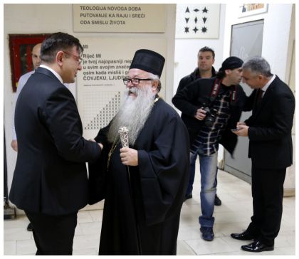12.12.2017. МИТРОПОЛИТ ХРИЗОСТОМ НА ОБИЉЕЖАВАЊУ Данас је, 12. децембра 2017. године, у Сарајеву на Скендерији у организацији Архива БиХ-не уприличено обиљежавање 70 година постојања и рада ове значајне институције. Цијенећи велики значај који има Архив БиХ-не, а и сам заљубљеник у архив, обиљежавању је присутвовао Високопреосвећени г.г. Хризостом, митрополит дабро-босански, којег је врло срдачно дочекао и поздравио Директор Архива г. Саша Клепић. Обиљежавању овог јубилеја између осталих присутвовали су Високи преставник УН-ја у БиХ-ни г. Валентин Инцко, министар у Вијећу министара БиХ-не г. Мирко Шаровић те велики број дипломата и представника државних и културних институција. |
